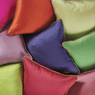 Passepoil tout autour de la housse réalisé en soie shantung lisse .