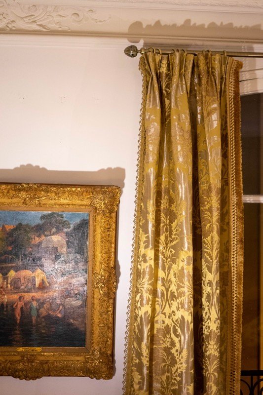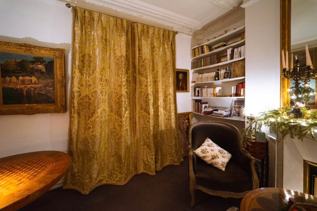 L’appartement disposait d’ouvertures aux proportions uniques, ce qui a nécessité une prise de mesures très précise est la création de rideaux sur mesure. Les hauteurs et largeurs ont été soigneusement adaptées pour un tombé parfait, valorisant l’élégance des espaces.