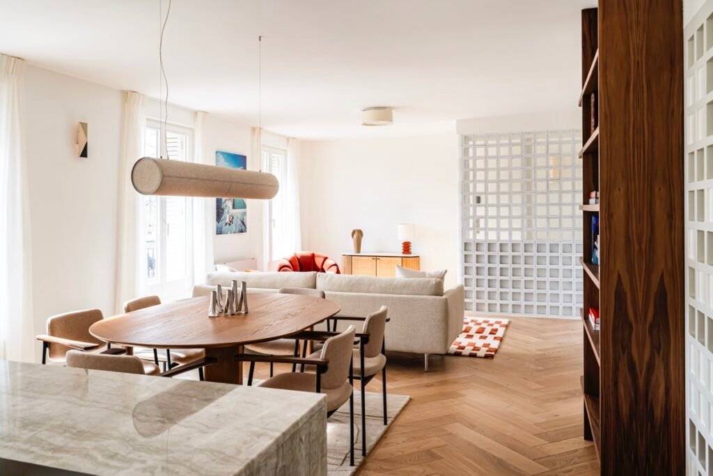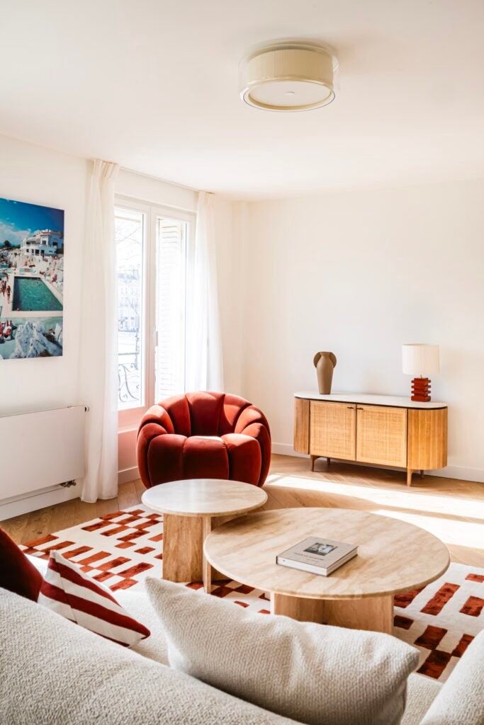 Ce projet a permis d’habiller intégralement l’appartement, du salon aux chambres, en passant par les espaces de circulation. Chaque pièce bénéficie ainsi d’un traitement textile adapté, créant une véritable signature visuelle et une atmosphère harmonieuse.