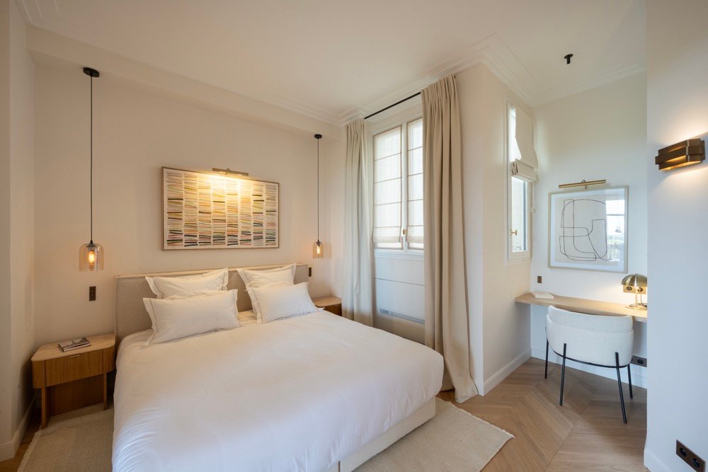 Ce projet a permis d’habiller intégralement l’appartement, du salon aux chambres, en passant par les espaces de circulation. Chaque pièce bénéficie ainsi d’un traitement textile adapté, créant une véritable signature visuelle et une atmosphère harmonieuse.